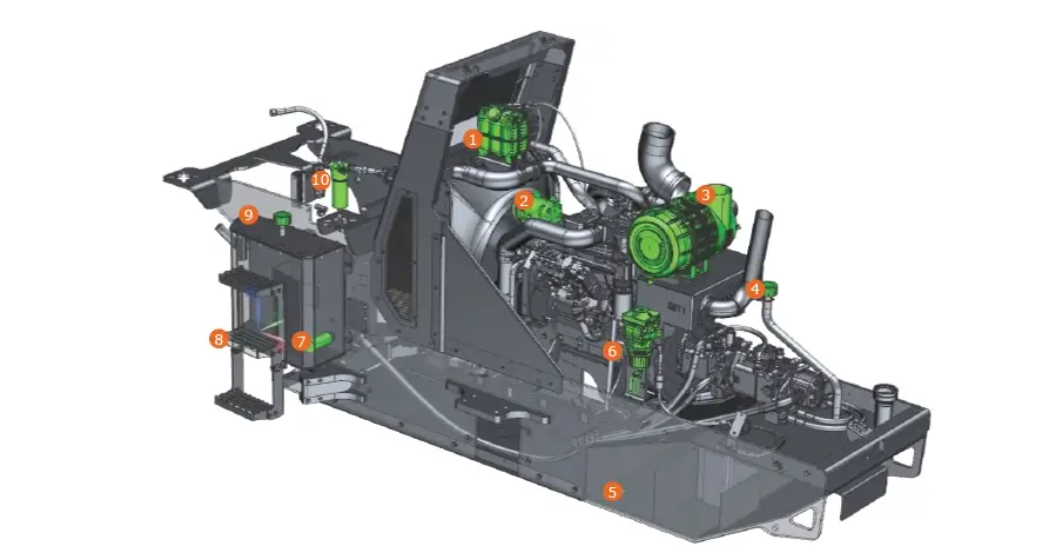 - Bảo trì dễ dàng: khoang động cơ và hệ thống thuỷ lực được thiết kế để truy cập nhanh, thuận tiện thay dầu/lọc